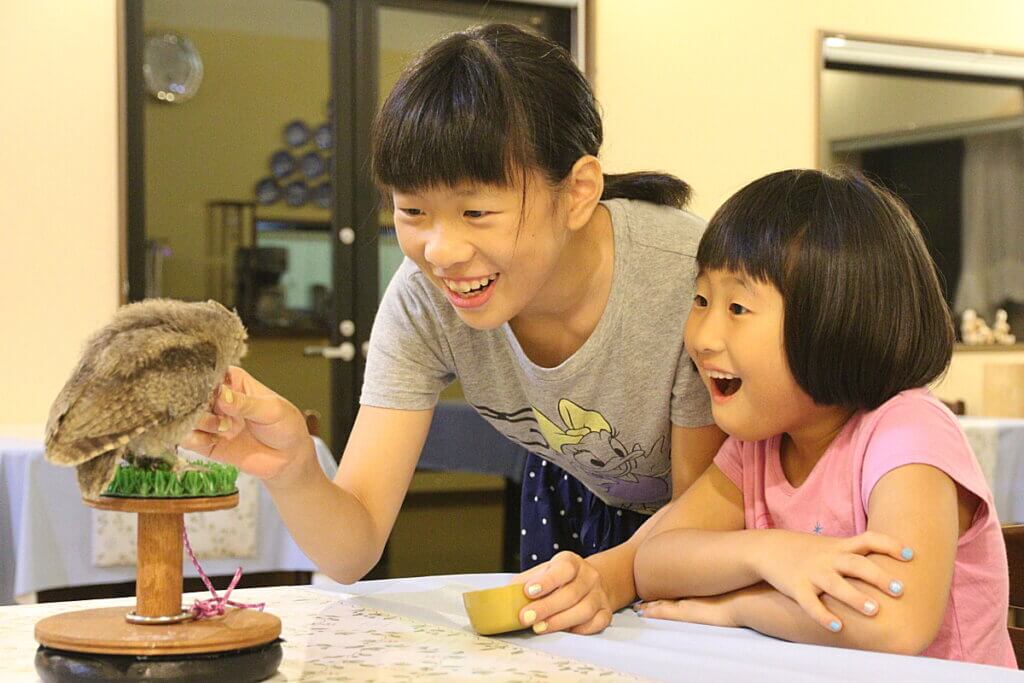当館のふくろうイベントをご紹介するHP、その他メディアでよく使わせていただいている下の写真もH様が子供のころの写真です。(左)